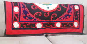 Suzani is a traditional tribal fabric, hand-embroidered by women in Central Asia. It was usually made by a mother as a dowry when her daughter gets married and presented to the groom on the wedding day. The daughter is then supposed to finish the unfinished part. Suzani comes from a Persian word, which means needle.